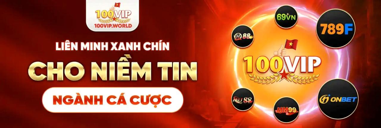 100VIP là liên minh cá cược xanh chín, cung cấp sản phẩm game: slot, thể thao, đá gà, casino cùng giftcode, sự kiện và hệ thống trả thưởng minh bạch....