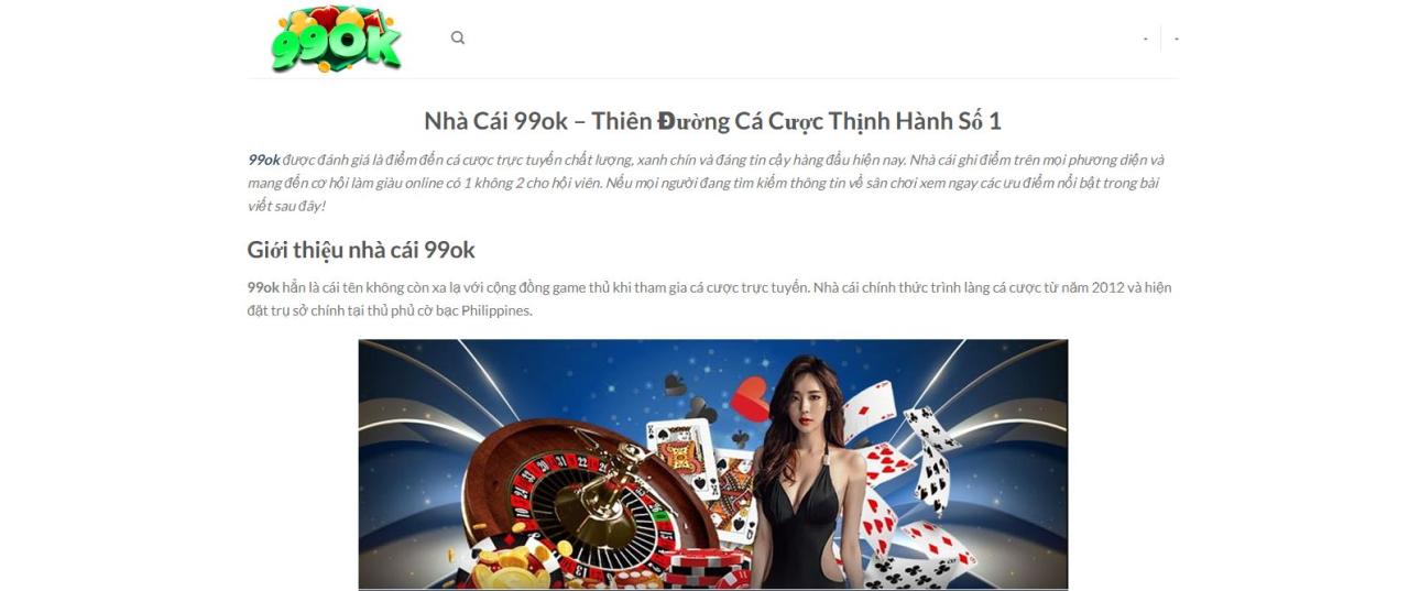 99ok là một sân chơi trực tuyến uy tín, ra mắt từ năm 2012 và đặt trụ sở tại Philippines, được cấp phép bởi PAGCOR. Địa chỉ: 38a Phú Định, Phường 16, Quận 8, Hồ Chí Minh, Việt Nam. Phone: 0374877997. Email: info@99okk.info. Website: https://99okk.info/#99ok#trangchu99ok#dangky99ok#dangnhap99ok#link99ok