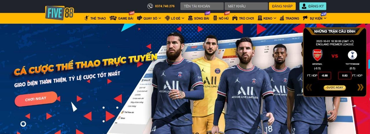 Five88 là nhà cái cá cược trực tuyến nổi bật với hệ thống thể thao, casino và game đổi thưởng hấp dẫn tại Việt Nam. Five88 hỗ trợ người chơi truy cập nhanh, đăng ký đơn giản và tham gia các kèo cược bóng đá, casino, nổ hũ, tài xỉu với tỷ lệ hoàn trả cực tốt. Giao diện dễ dùng, nạp rút siêu tốc và nhiều chương trình khuyến mãi được cập nhật mỗi ngày.