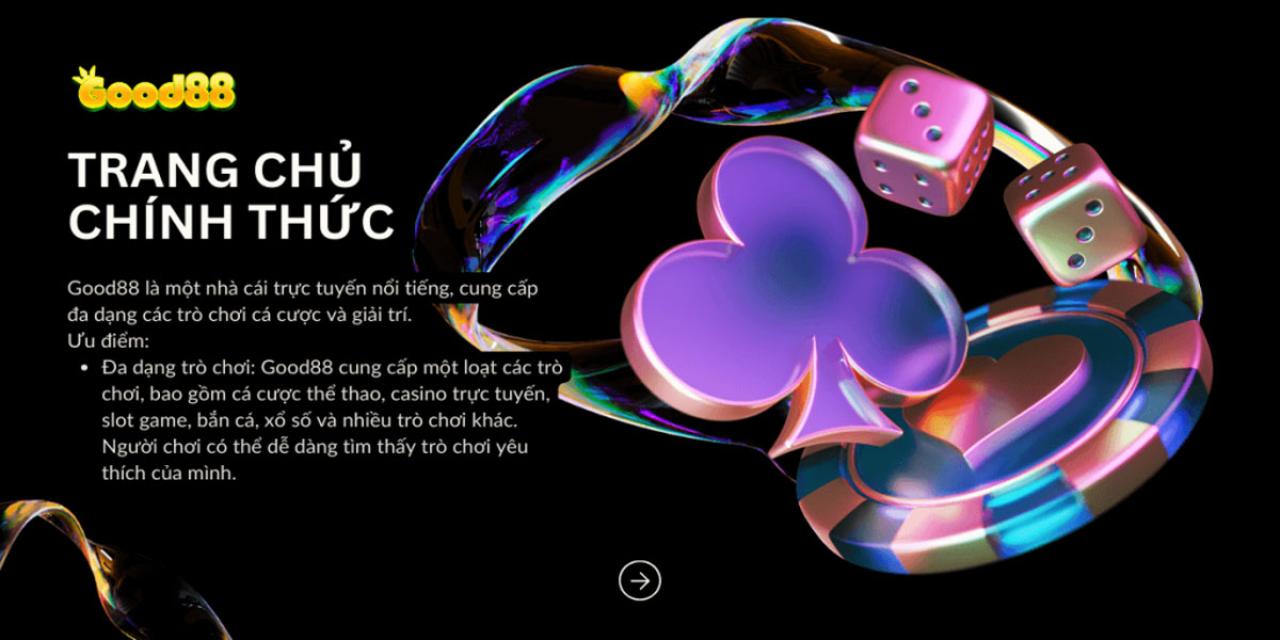 Good88 is a leading online casino platform, providing many attractive betting and entertainment games with a friendly user interface. Good88 is committed to providing a safe and fair gaming experience, along with many attractive promotions to increase players' chances of winning big.