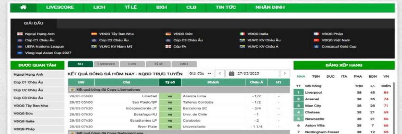 Tường thuật trực tiếp KQBD - Kết quả bóng đá