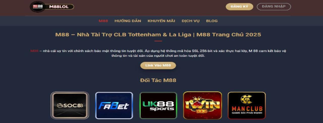 M88 là một trong những nhà cái uy tín hàng đầu tại Châu Á, nổi bật với các sản phẩm cá cược trực tuyến đa dạng như Casino, Keno/Xổ số, Đá gà và đặc biệt là cá cược thể thao.