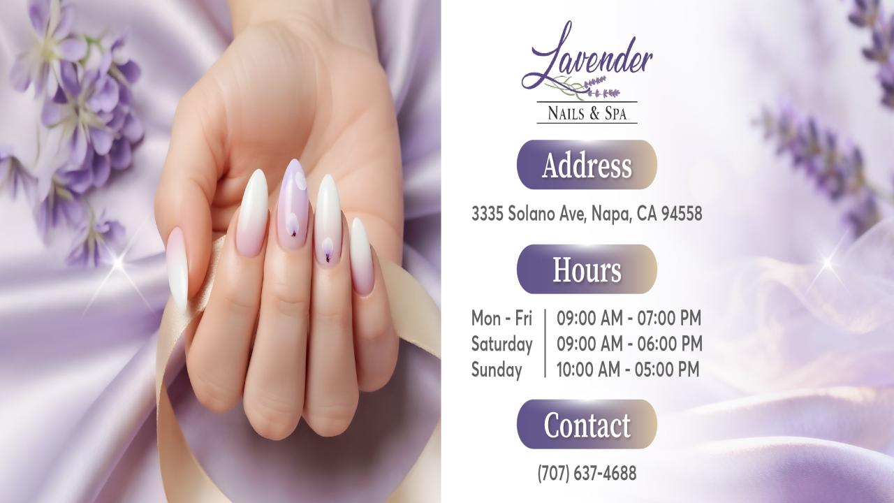 Nail Salon Solano Ave, Napa, CA 94558. Refresh your look at Lavender Nails & Spa LLC — professional manicure & pedicure in a clean, relaxing space.