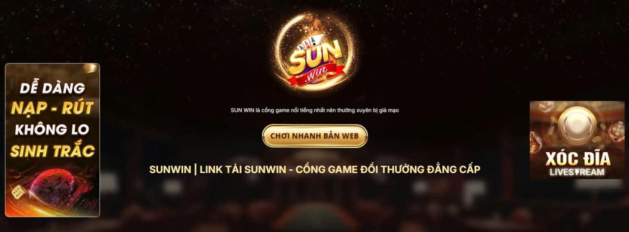 Sunwin là sòng bài Casino trực tuyến, là Game Bài đẳng cấp được ra mắt lần đầu tiên tại thị trường Việt Nam vào năm 2018. Với nhiều năm kinh nghiệm hoạt động trên thị trường game bài đổi thưởng trực tuyến, Sunwin đã xây dựng được một vị trí vững chắc và được rất nhiều người chơi tin tưởng.
