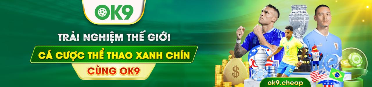 Chào mừng đến với OK9 – nơi cá cược trở nên thú vị hơn bao giờ hết! Từ thể thao đến casino, OK9 cung cấp mọi trò chơi bạn yêu thích với tỷ lệ cược cạnh tranh. Tham gia ngay hôm nay và tận hưởng những phần thưởng hấp dẫn!