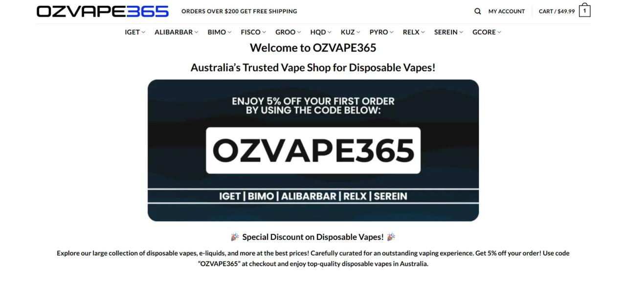 OZVAPE365 (Oz Vape Shop) is a trusted online Australia vape shop specialising in premium disposable vapes, e-liquids, nicotine pouches, and essential vape accessories. OZVAPE365 stocks leading brands such as IGET Vape, RELX Vape, ALIBARBAR Vape, BIMO Vape, and more.