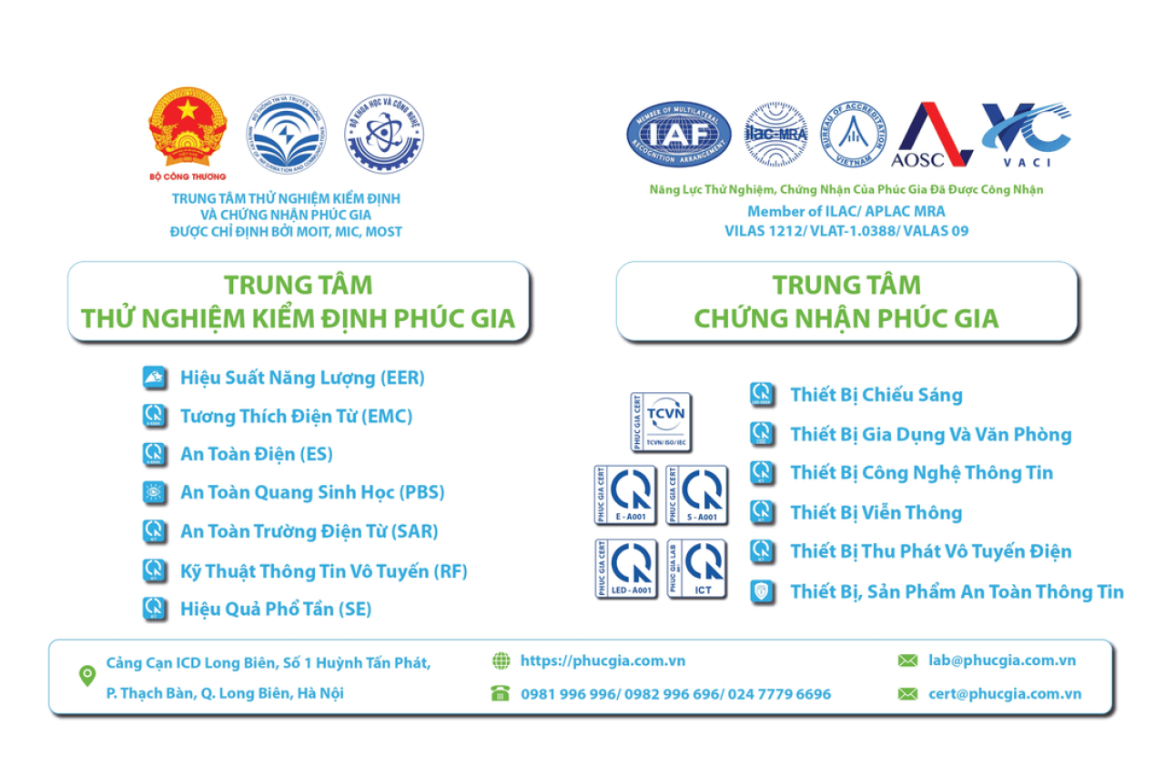 Phúc Gia là đơn vị hàng đầu trong lĩnh vực thử nghiệm điện tử gia dụng , đồng thời đang mở rộng sang các lĩnh vực đào tạo về thử nghiệm và hiệu chuẩn . Với đội ngũ chuyên gia giàu kinh nghiệm và hệ thống phòng thử nghiệm đạt chuẩn, chúng tôi cam kết cung cấp giải pháp toàn diện và chất lượng cho doanh nghiệp trong và ngoài nước.