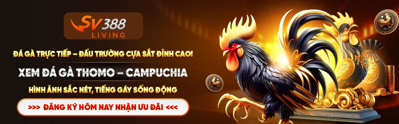 SV388 - Nhà Cái Cá Cược Đá Gà Trực Tiếp Thomo Uy Tín. SV388 Đa dạng các trò chơi, đội ngũ hỗ trợ CSKH chuyên nghiệp, môi trường cá cược an toàn.