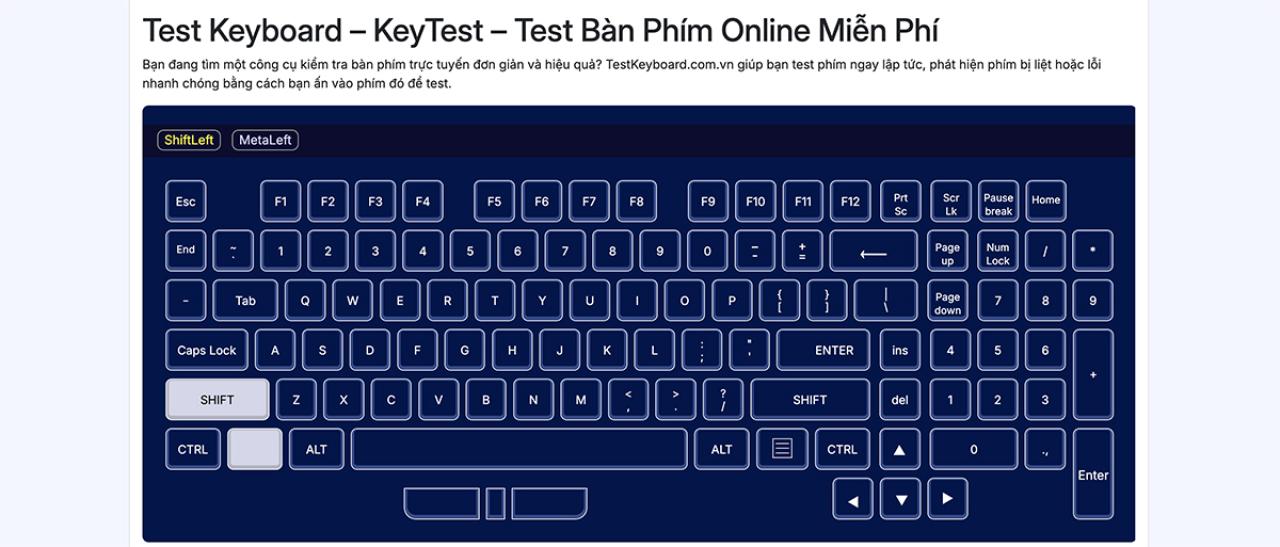 Bạn đang gặp tình trạng bàn phím bị kẹt, không phản hồi cho đến những vấn đề nghiêm trọng hơn, tất cả đều có thể gây gián đoạn công việc và trải nghiệm của bạn. TestKeyboard.com.vn mang đến giải pháp đơn giản và hiệu quả để bạn kiểm tra xem phím nào lỗi, phím nào hoạt động bình thường. Với giao diện thân thiện và dễ sử dụng, bạn có thể thực hiện việc kiểm tra ở bất cứ đâu và bất cứ khi nào bạn cần. Website: https://testkeyboard.com.vn/ SĐT 0378881902 Địa chỉ Chung cư CT2A - MHDI, số 537 Bát Khối, Thạch Bàn, Long Biên, Hà Nội Hastag #TestKeyboard#KiemTraBanPhimOnline#CongCuHuuIch#BanPhimMayTinh#PhatHienLoiBanPhim