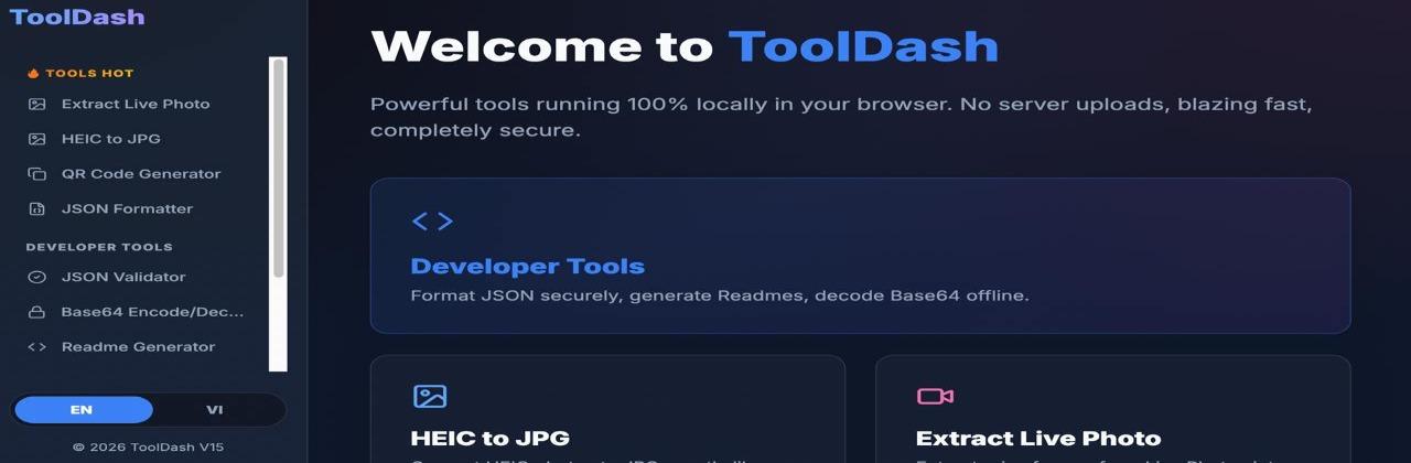 ToolDash cung cấp công cụ Tạo mã QR code miễn phí, cho phép bạn tạo và tải xuống ảnh PNG với độ phân giải cao, sắc nét, phù hợp cho in ấn và sử dụng chuyên nghiệp. Mọi mã QR đều được lưu trữ trọn đời, không giới hạn số lượng và hoạt động ổn định theo dạng tĩnh, đảm bảo truy cập nhanh chóng và lâu dài. Giao diện đơn giản, dễ sử dụng, không yêu cầu đăng ký, giúp bạn tạo QR code chỉ trong vài giây cho website, liên kết, văn bản hoặc bất kỳ nội dung nào bạn cần.
