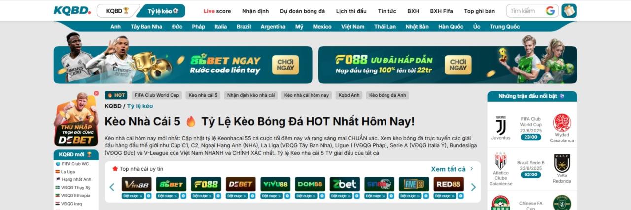 kqbd.top là trang web chuyên cung cấp tỷ lệ kèo nhà cái chính xác, đa dạng và cập nhật liên tục từ các giải đấu hàng đầu thế giới. Bên cạnh tỷ lệ kèo châu...
